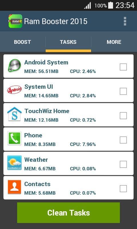 Увеличить память всякий раз, когда вы хотите. К 2015 году RAM Booster дает вам доступ для фоновых процессов принимая пространство в вашем смартфоне ОЗУ. Вы можете выбрать задачи, которые вы хотите убить и те, которые вы хотите сохранить в памяти.