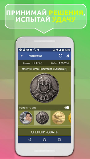 Нет пароля к новому аккаунту? Хотите новую цветовую гамму? Надо срочно принять решение, но как назло нет монетки под рукой? Доверьте это смартфону.