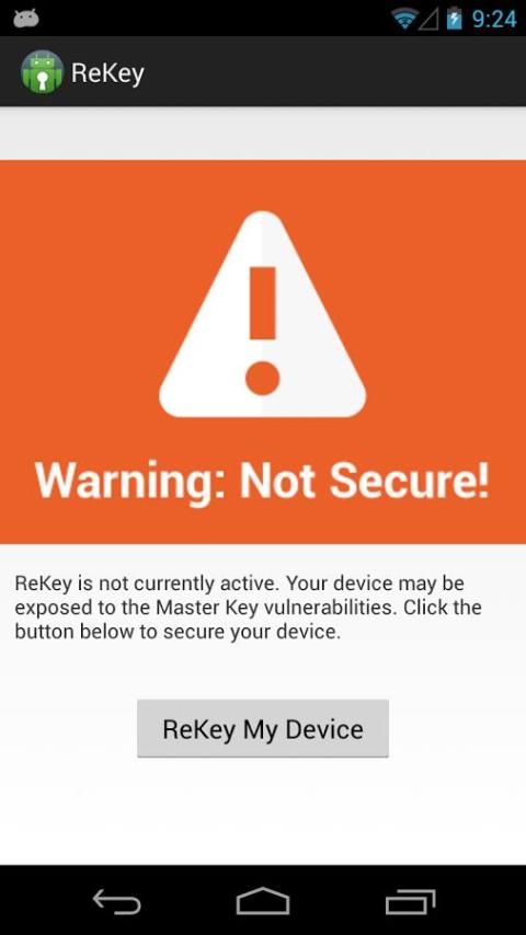 Rekey является мобильным приложением, которое исправляет недавно раскрыта "мастер-ключ" уязвимости, обнаруженные на Bluebox и другие стороны, которые затрагивают практически все Android-устройства в дикой природе и позволяют злоумышленникам получить полный контроль над мобильным устройством пользователя.
