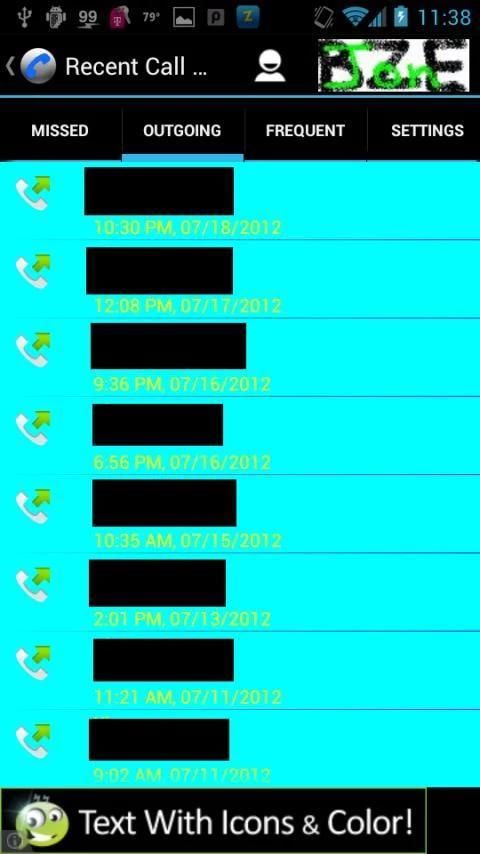 Простой недавно журнал звонков для вашего устройства. Обеспечивает вкладки для недавних контактов, пропущенных контактов, пытались контактов и частых контактов.