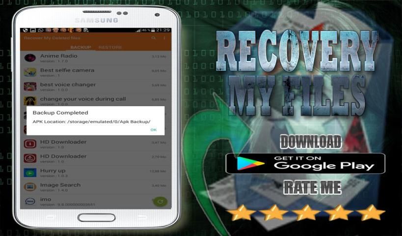 Recover My удаленных файлов является простой восстановления приложений, которые можно создавать резервные копии или восстановить или восстановить все приложения или все ваши файлы и несколько других вещей на вашем телефоне установлены. Да, Вы можете сделать это сейчас с программным обеспечением восстановления потерянные данные положить ваши фотографии, SMS, Vidoes, журналы вызовов, настройки системы, контакты, nambers фонах, восстановление - восстановление текстовых сообщений, все точки доступа и приложения резервного копирования. Сохранение и восстановление очень легко, просто bdath кнопку.