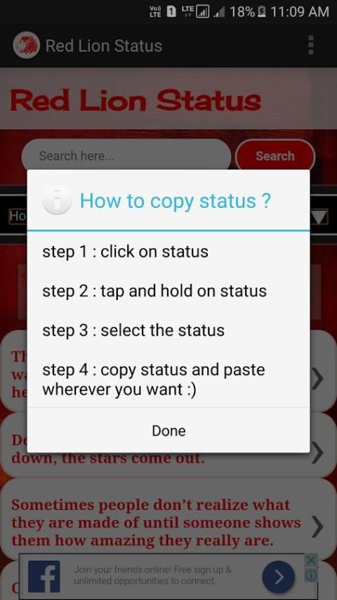 Red Lion Статус полностью Свободный и Лучший Hindi Статус заявки для всех людей, которые любят, чтобы установить лучший статус и Hindi котировки на Facebook, Whatsapp и других социальных медиа.