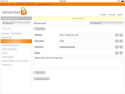 Это приложение синхронизирует по беспроводной связи с https://remembemansappassapp.com или вы можете просто использовать приложение на этом устройстве.