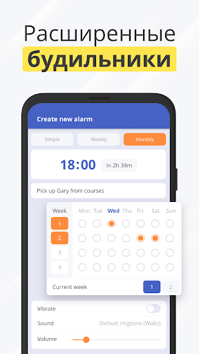 У тебя сложный график и ты устал от того, что постоянно нужно заводить кучу будильников? Мы добавили штуку, которая поможет упростить тебе жизнь в этом. Ты можешь завести будильник с графиком до 4 недель и установить разные дни для срабатывания на каждой из них. Это снизит стресс и поможет делать более важные вещи, нежели контроль над кучей будильников ⌚