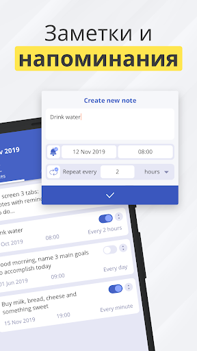 Допустим, ты хочешь развить привычку пить воду.💧Нужно ли тебе отдельное приложение для этого? Конечно же нет. Ты можешь выставить напоминание, которое будет напоминать пить воду каждый час или два. Или тебе нужно что-то сделать, но ты волнуешься, что забудешь это даже после того, как получишь уведомление? Ты можешь выставить повторяющееся уведомление, которое будет напоминать тебе каждую минуту (да, настолько часто). Это поможет тебе держать важные мысли в уме!