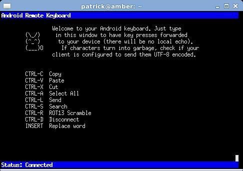 Удаленная клавиатура позволяет подключить клавиатуру компьютера на рабочем столе компьютера через беспроводную сеть (может быть перенаправлен через USB с помощью АБР) на андроид устройства и управлять им удобно через любого клиента Telnet.