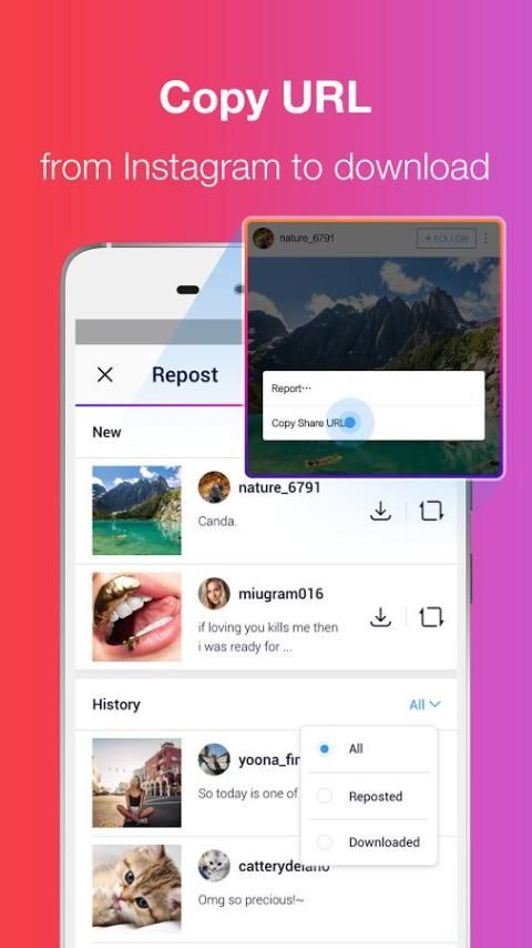 Быстрее скачать и перепечатывать для Instagram сейчас! Вы можете просто скопировать URL-адресов во время просмотра сообщения, а затем наш Insta Reposter поможет вам скачать и перепечатывать быстро. Легко наслаждаться любимыми видео и фотографии в автономном режиме с друзьями.