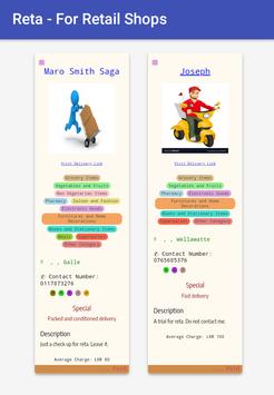Reta is a retail shops search engine. It provides facility to search available retail shops near your location. This app also allows you to select a delivery man to deliver the items at your doorstep.