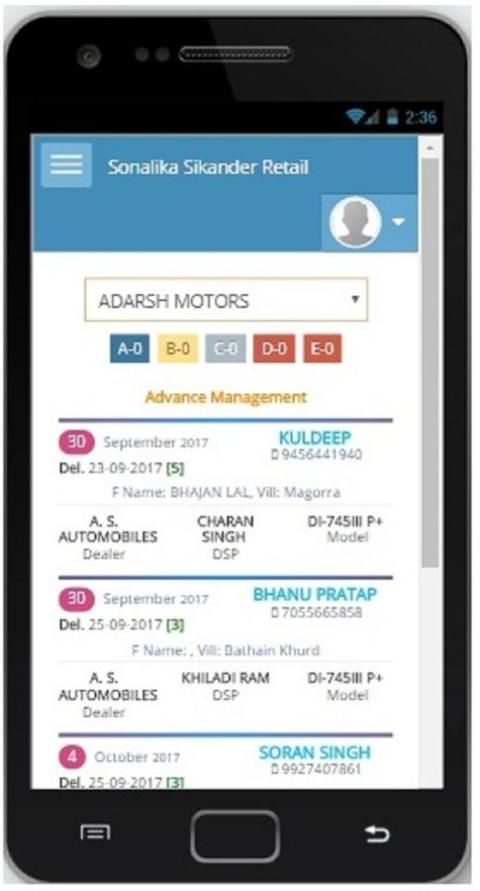 Розничная Сикандер приложение Соналика будет использоваться розничной командой, где они могут отслеживать розничную торговлю, дознание и провод