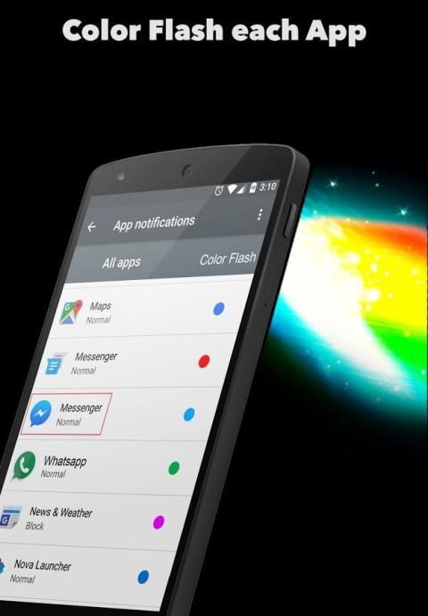 Получить цвет свет вспышки мигает на звонок и смс для всех приложений. Это приложение будет, когда кто-то позвонить вам вспышку света и выключается с различными цветами.