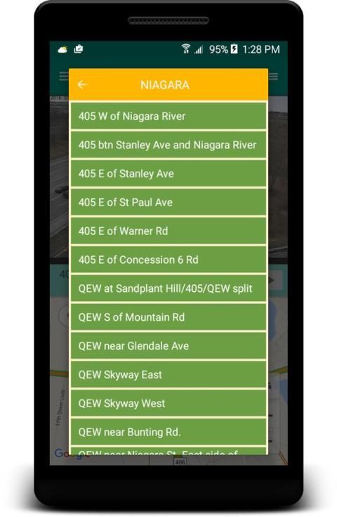 - Несколько способов навигации и показывать изображение: проведите пальцем влево / вправо, коснитесь камеры маркер на карте Google, выберите местоположение камеры в списке и автоматической навигации