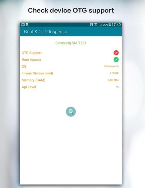 *. OTG (On The Go) это функция, которая позволяет вашему устройству связываться с внешними устройствами USB с помощью специального кабеля OTG. Некоторые устройства Android поддерживает OTG (On The Go) функциональности в то время как некоторые этого не делают. Этот простой OTG (On The Go, USB) Поддержка проверки, тестер позволит вам проверить, поддерживает ли ваше устройство OTG (On The Go), USB функциональность или нет. просто нажмите на кнопку (TAP) текст, и он покажет вам, если ваше устройство поддерживает OTG (On The Go, USB) функциональности.