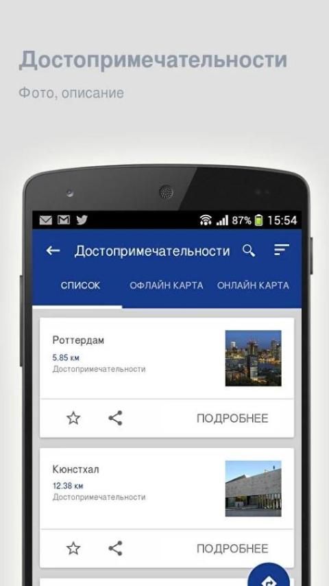 - Встроенный планировщик маршрута позволит составить план обхода достопримечательностей.