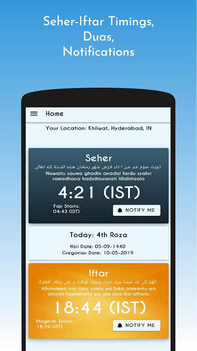 2.Уведомление: Получить уведомление о времени Seher и Iftar до 15 минут.