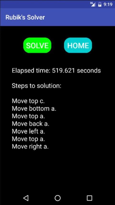 Это приложение генерирует самый короткий путь для решения кубик 3x3x3 Рубика. Все, что вам нужно сделать, это выбрать цвета для каждой грани и нажать кнопку решить. 'Рубика Solver' сделает все остальное за вас!