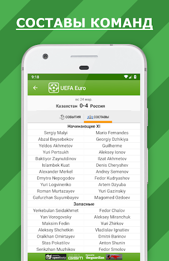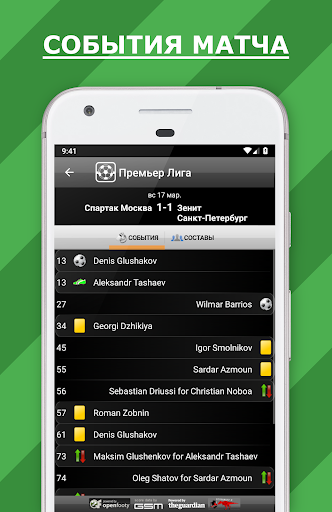 • Матч события и составы команд