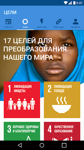 - детальная информация о каждой из 17 целей, включая плановые задания, видео с объяснениями, ключевые факты и цифры, а также советы, каким образом Вы можете помочь достичь их посредством активизации.