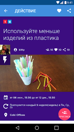 - возможность создавать Действия, которые Вы планируете в своем регионе, и пригласить других людей присоединиться.