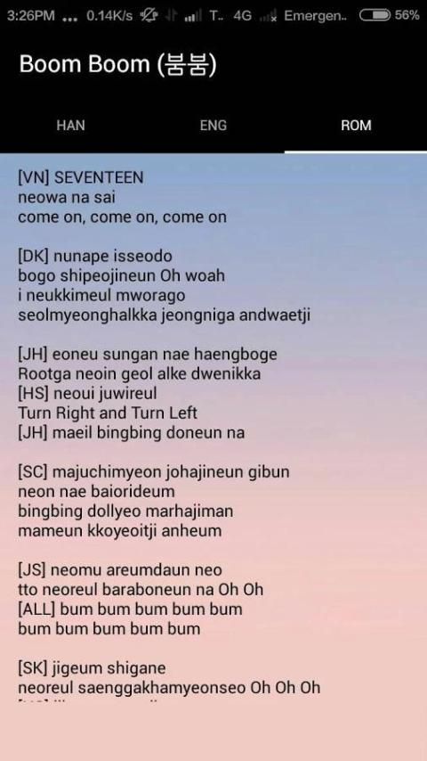 Это приложение содержит тексты песен семнадцать в в хангыль, латинизации и английском языках с распределительными линиями.