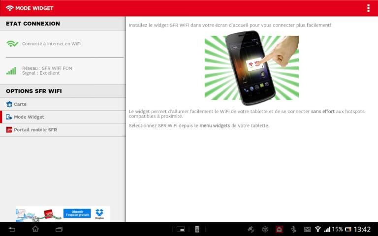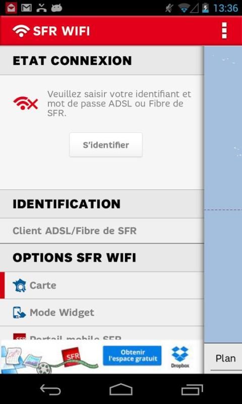Приложение SFR WiFi теперь доступна для клиентов Box SFR, как мобильных абонентов с SIM картой SFR с подписки на услугу предоставления доступа к SFR WiFi. Для ADSL / волокно SFR клиенты будут запрашиваться только при первом запуске, идентификация через SFR Box идентификаторов.