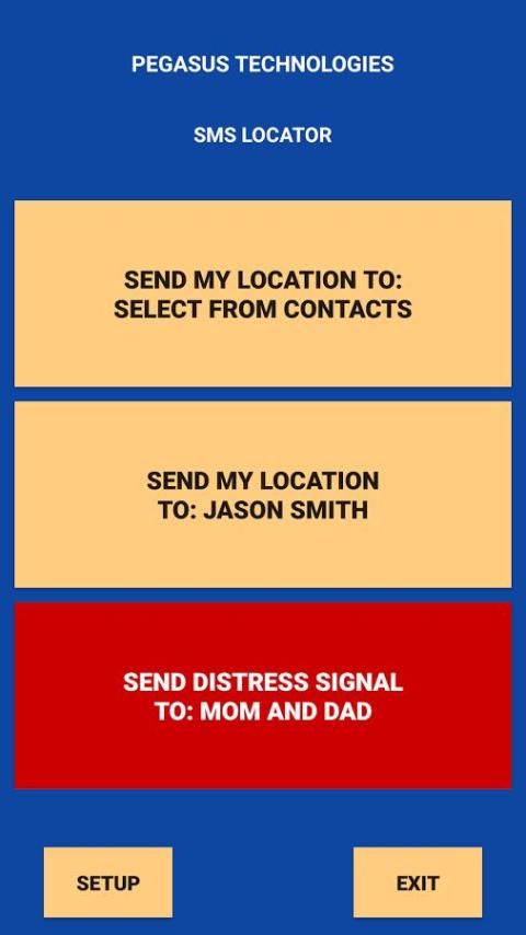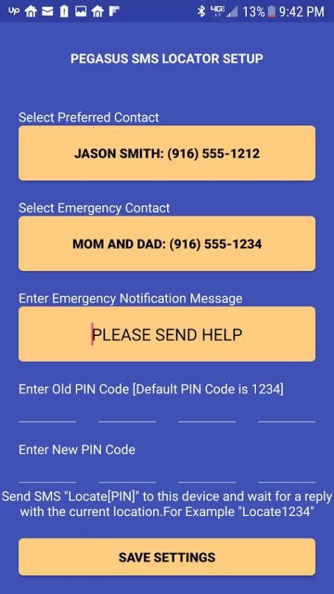 Это идеальное приложение для установки на телефон вашего ребенка, потому что они могут отправить вам свое текущее местоположение в любое время, очень легко. Еще более важно то, что вы можете сделать их телефон отправить вам свое местоположение по требованию. Если вам интересно, где ваш ребенок находится, и они не отвечают их телефон, просто отправить текстовое сообщение, которое говорит «Locate1234» (без кавычек) и их телефон будет автоматически отвечать с его текущим местоположением. PIN-код по умолчанию 1234 может быть установлен на любой 4-значный код вашего выбора. Пожалуйста, выберите PIN-код, который можно легко запомнить при стрессе. Лицу, запрашивающее и получение местоположения SMS не требуется устанавливать в этом приложении. Они получат местоположение GPS в текстовом сообщении, как Google картографирование ссылку, и когда они нажмите на ссылку, местоположение будет показано на карте Google. При установке этого приложения на ваш телефон или телефон вашего ребенка, перейдите на экран настройки и выберите нужный контакт, ваш EMERGENCY CONTACT, и выбрать свой собственный 4-значный PIN-код. Кроме того, текущий PIN-код (по умолчанию 1234) необходимо для того, чтобы выбрать новый PIN-код, так что ваш ребенок не может изменить его без вашего разрешения. После завершения установки, имена предпочтительного контакта и аварийного контакта будет отображаться на их соответствующих кнопок. Когда вы посылаете сигнал бедствия вашей экстренной связи, ваш телефон будет отправлять SMS с надписью «ОТПРАВЬТЕ HELP» вместе с вашим текущим местоположением для выбранного контакта. Вы также можете изменить текст этого сообщения в меню настройки, если вы так желаете. Если вы потеряете свой телефон, и телефон имеет установленное это приложение, вы можете просто заимствовать друг телефон, отправьте SMS на свой телефон, который говорит «Locate1234» и получить ответ SMS с его местоположением. ПОЖАЛУЙСТА, ОБРАТИТЕ ВНИМАНИЕ! Место службы должны быть включены на устройстве для того, чтобы отправить его местоположение. Все расположение SMS сообщения посылаются дважды, чтобы обеспечить надежную доставку.