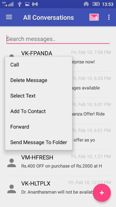 Sms Организатор также дает вам лучше контролировать ваш почтовый ящик. Например, вы можете установить правило к Автоудален SMSes от определенного отправителя. Или автоматически удалять текстовые сообщения, содержащие определенных ключевых слов. Вы можете создать правило для автоматического удаления любого OTP, содержащий сообщения на следующий день, потому что они только мусор (и, возможно, проблема безопасности), как только они используются.