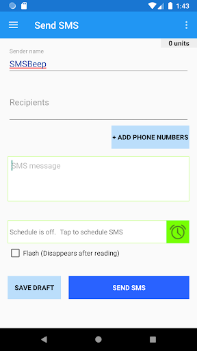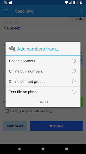 SMSBeep-приложение использует ваше соединение 2G, 3G или WiFi, чтобы легко отправить объемные SMS.