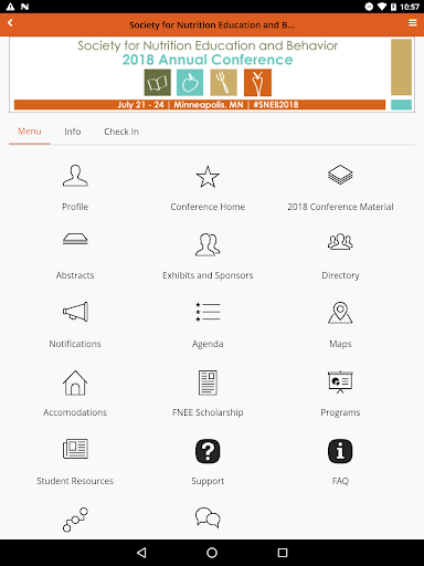 This is an app for the Society for Nutrition Education and Behavior (SNEB) 51st Annual Conference. Use this to interact with other attendees or exhibitors and to customize your own personal profile; as well as receive important announcements from conference administrators. Other features include a complete and customizable agenda of all the sessions, conference chat room, and much more.