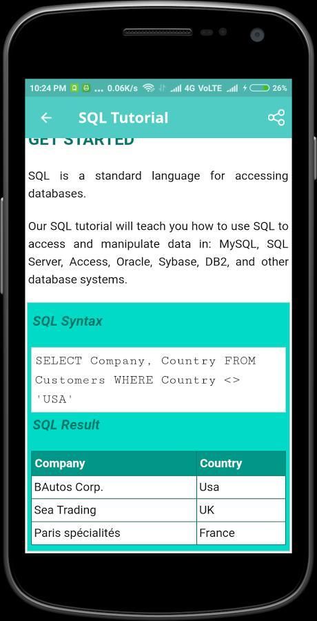 Получить самые лучшие и бесплатные приложения для вашего телефона. 30,000+ пользователи скачали последнюю версию SQL Tutorial в 9Apps бесплатно каждую неделю! Когда вы пользуетесь им, вы будете привлечены. Это горячее приложение было выпущено в 2017-12-30. Скачать в официальный вебсайт как 9apps, вы никогда не пропустите его!