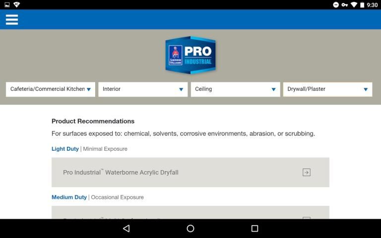 Когда производительность и внешний вид материи, доверяют проверенные временем линии Pro промышленных покрытий от Sherwin-Williams, чтобы обеспечить исключительную прочность и прочного эстетики. Эти инновационные технологии разработаны, чтобы выдерживать высокий трафик и жестких условиях эксплуатации, что делает их идеальными для занятых коммерческой и институциональной среды. По данным полной спецификации для каждой среды, Pro Industrial является интерактивным, быстрым и простым в использовании. Просто выберите проект, окружающая среда, площадь и основания Типы вашего объекта и системных приложений возвращает предложения, основанные на ваших спецификациях, в том числе: