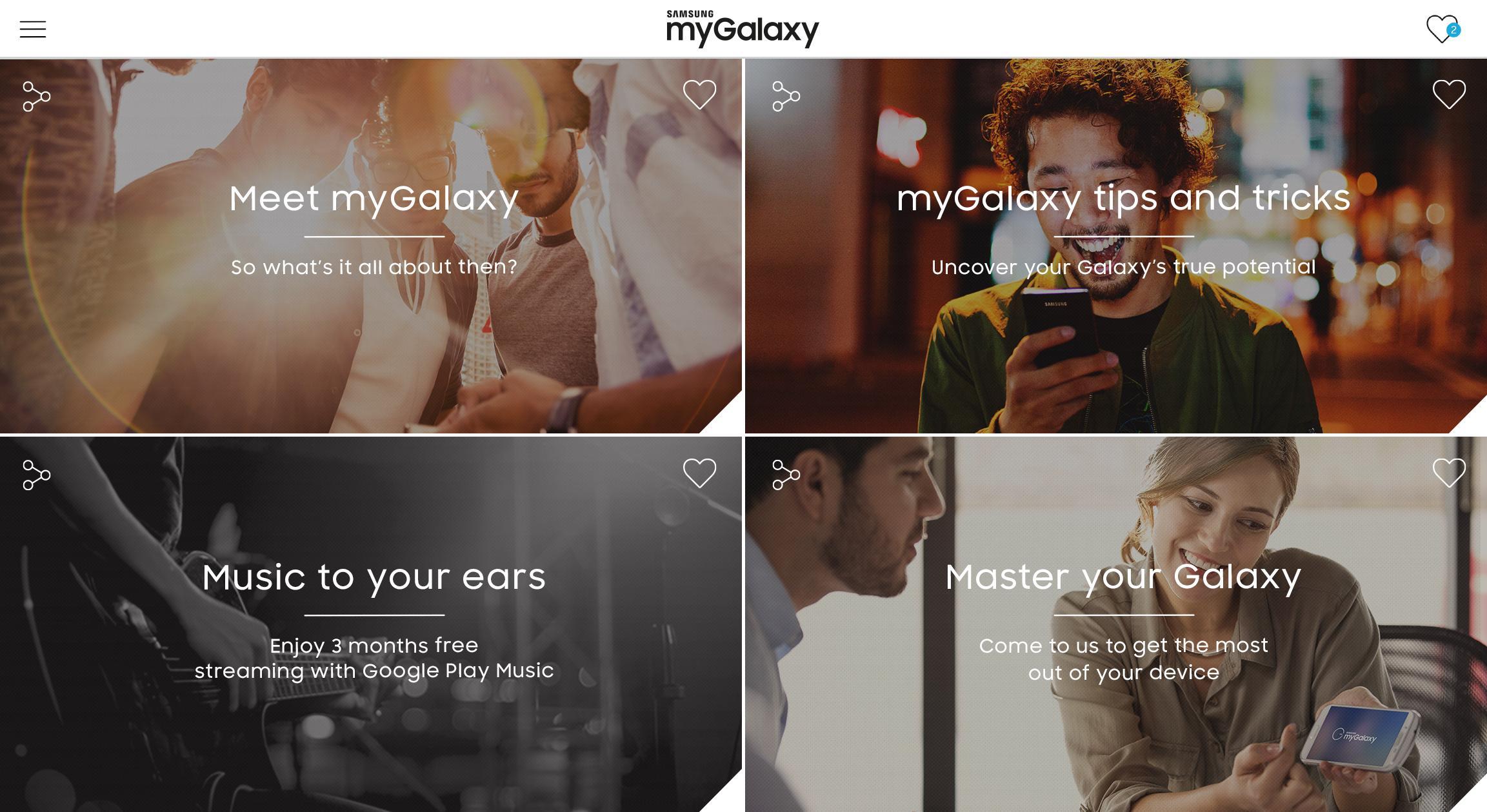 myGalaxy is our way of saying thank you. Exclusive to Samsung customers, myGalaxy is the best way to experience all the benefits of being with Samsung. It’s where you’ll find everything from special offers on Samsung products, money-can't-buy experiences and super-useful tips and hints for your Samsung device.