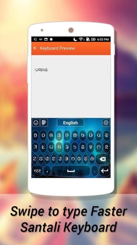Сантали Клавиатура дает возможность настроить собственную настройку. Много Emoji, эмоции и улыбки интегрированы, которые будут держать ваш интерес в чате. Изменение клавиатуры на английский и сантали с таким же клавиатуры. Изменение и настроить параметры с помощью кнопки настройки в пределах клавиатуры сантали.