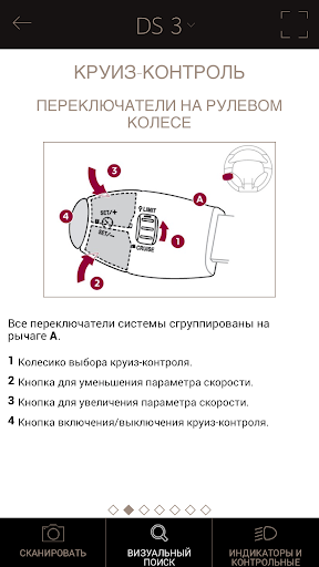 Приложение Scan MyDS служит для доступа к основной бортовой документации в электронном формате. Доступ к содержащейся в Scan MyDS информации по DS можно получать путем сканирования интересующих вас деталей и систем непосредственно на автомобиле. Можно полностью ознакомиться со своим новым DS, открыв описание основных систем автомобиля.
