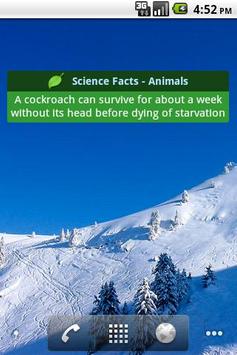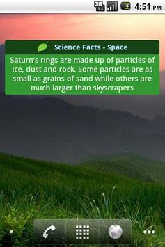 A widget that pops up with amazing and interesting science facts from various categories. To add the widget, long press on home screen (press the menu button and click add) and then click widget and select the widget.