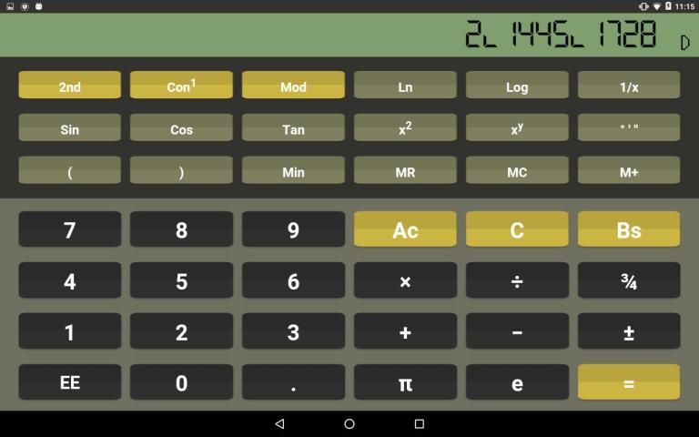 This calculator features landscape and portrait orientations in a pleasing look and feel. Thanks to its smart layout engine the user interface stays always clear independently of different screen sizes. Usage is very similar compared to a usual hardware calculator. If present feel free to use your physical keyboard. Haptic and visual feedback can be toggled in the menu. The calculator offers the following features and functions: - basic arithmetic operations in line with BODMAS rule and with up to ten brackets - fractional arithmetic - root - trigonometric and hyperbolic as well as their inverse functions (degree, grad, radian) - logarithmic and exponential functions - binary, octal and hexadecimal calculations - sexagesimal conversions - more than 40 constants of physics, math and chemistry - memory functions - random numbers - factorial You can find further information, instructions for and terms of use on the developers website. Don't hesitate to contact me if you face any issues or if you have any suggestions. I'll try to help/response you as soon as possible. Thank you!