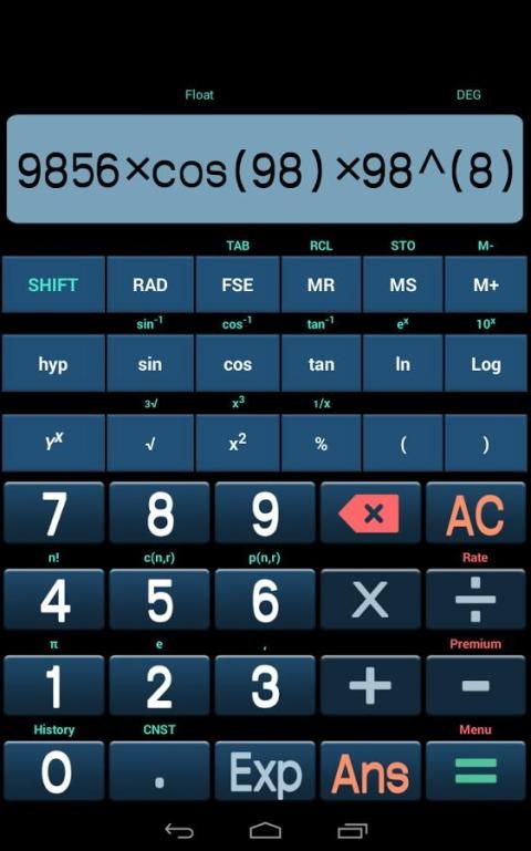 Калькулятор для всех целей. Теперь попробуйте расчет с научным калькулятором на андроид устройства. Работы по трех различных режимах - Float, Основные средства и Научные и расчета почти все научные и неправительственные научные расчеты в лету.