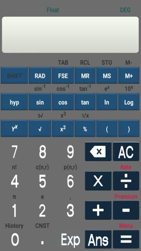 This app includes: scientific calculator, Standard calculator, calc, Tip and percent calculator which can be accessed from the menu.