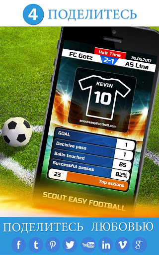Scout Easy Football - это мобильное приложение, которое позволяет вам фиксировать действия игрока в реальном времени во время футбольного матча. В перерыве между таймами и в конце игры вы сможете получить полную и объективную статистику для игрока, за которым вы следили