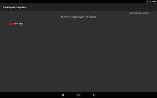 - пролистайте список установленных виджетов и выберите Блокировка экрана, разместите виджет на домашнем экране;