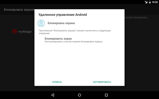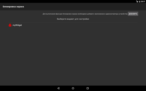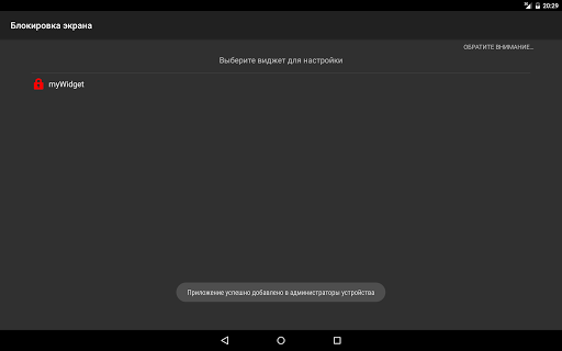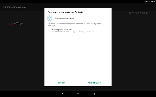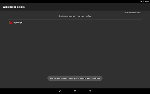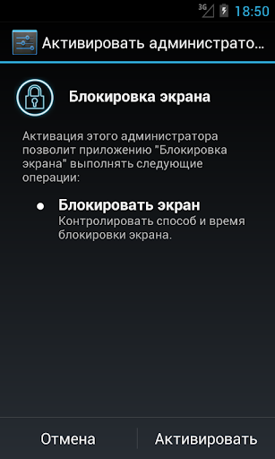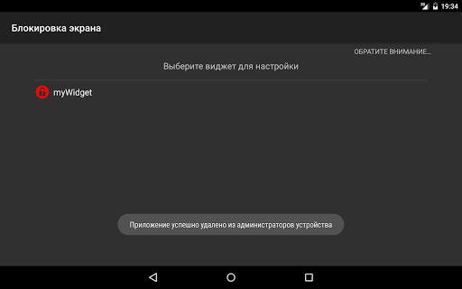 ОБРАТИТЕ ВНИМАНИЕ: Для выполнения функции блокировки экрана необходимо добавить приложение в администраторы устройства, это особенность системы Android. Перед удалением приложения, соответственно, необходимо будет удалить приложение из администраторов устройства. Эти операции доступны из главного окна программы.