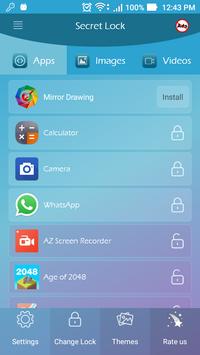 Secret app lock developed for securing content with easy to use features, fast speed, works in low memory, consumes less battery power, accurate and all these with beautiful design and themes.