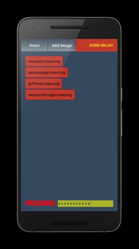 Создание защищенных изображений с помощью этого приложения. Это приложение не кодирует галереи, но кодировать каждое изображение с паролем. Вы можете отправить ваши тайные образы для ваших друзей и единственного друга с правильным паролем может открыть его.