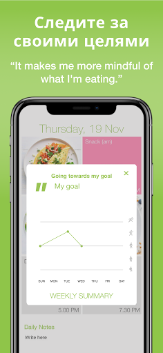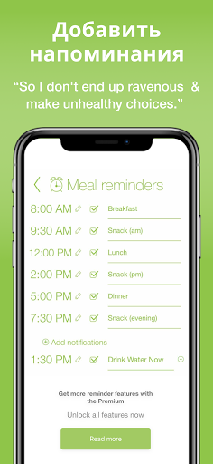 Вам потребуется всего 2 касания, чтобы зарегистрировать прием пищи. Попробуйте сами.