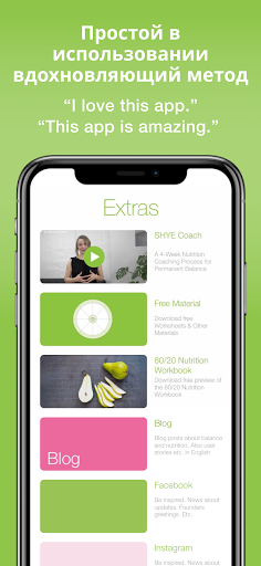 Независимо от того, является ли вашей целью улучшение самочувствия, потеря лишних килограммов или контроль веса, SHYE - ваш верный помощник на пути к успеху. Это самая легкая возможность отслеживать то, что вы едите... и питаться регулярно!
