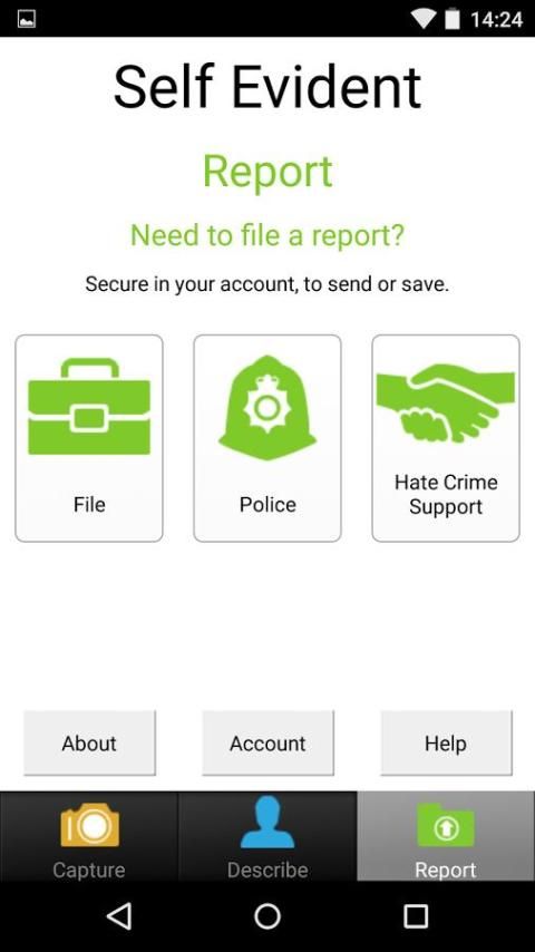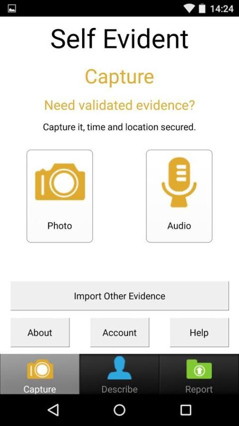 Самоочевидным является бесплатное приложение, которое записывает, проверяет и обеспечивает доказательства. В то время как Android-версия была разработана в первую очередь как отчетный преступление приложение, оно также позволяет подать отчет для работы, уведомить консультанта или бизнес требования, направить средства массовой информации новость или просто обеспечить доказательства в своем банковском счету.
