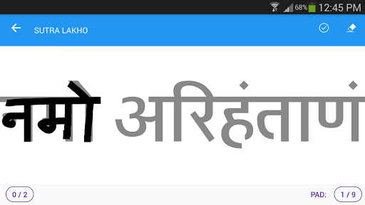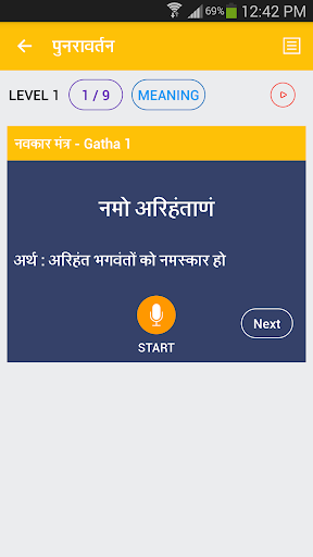 It has a structured method of Listening to the Pronunciation, revising with Speech recognition option, writing practice on the device, interactively providing the meanings of the Sutras and ultimately giving exam to check your level. It guides you very closely and strengthens your knowledge unknowingly.