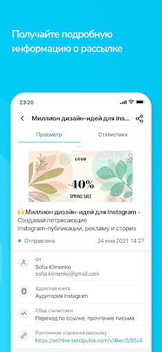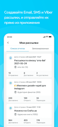Приложение SendPulse позволяет добавлять подписчиков в ваши списки контактов, отправлять рассылки и оценивать результаты проведенных кампаний. Создавайте рассылки на компьютере и отправляйте их с помощью телефона или планшета, где бы вы ни были.
