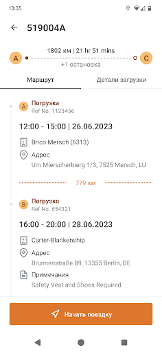 - Информация о погрузке и остановках