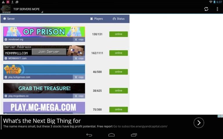 С помощью серверов для Minecraft PE 0.15 приложения вы будете иметь возможность пользоваться 100 лучших MCPE серверов по всему миру.