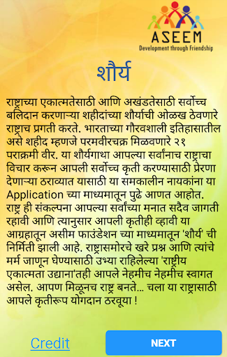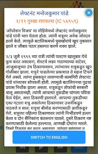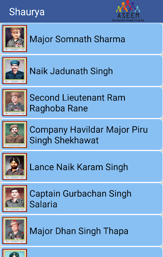 An application to honour our contemporary heroes, the Param Vir Chakra awardees. Listen to the thrilling tales of the 21 warriors who showed conspicuous valor in the face of the enemy. Also read the citations in English and Marathi.